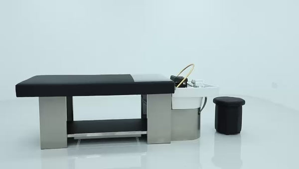 Transforma tu salón o spa en un espacio de relajación total con este Head Spa profesional con camilla integrada, diseñado para tratamientos capilares, masajes craneales, aromaterapia y rituales de relajación profunda. Su estructura moderna combina confort, funcionalidad y durabilidad, ofreciendo una experiencia premium tanto para el cliente como para el terapeuta.